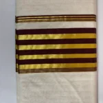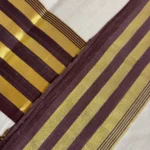 Kaveri Sandhya blends the grounded richness of brown with the warm glow of golden kasavu. Handwoven in soft Kerala cotton, the off-white body is framed by a deep brown kara, while the golden border shimmers gently like the sun dipping into the horizon. It’s a saree that speaks of tradition with quiet grace — perfect for festivals, temple visits, or simply carrying a piece of Kerala’s timeless charm with you.