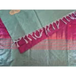 Contrasting magenta pallu with intricate woven stripes