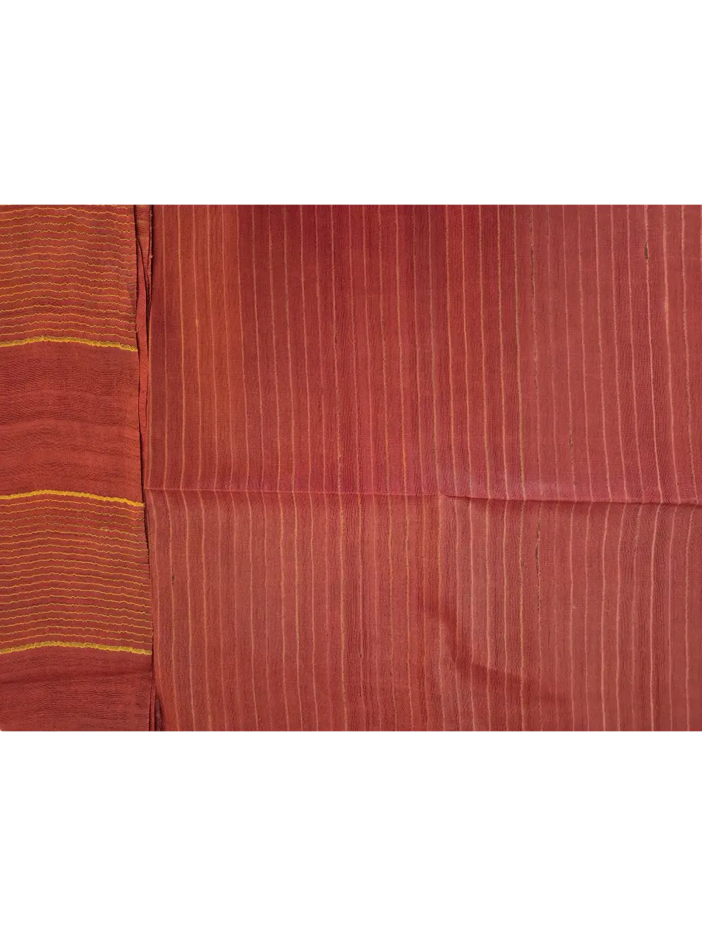 Rohini glows with the brilliance of starlit traditions. Woven from rich Tussar silk, this saree features a deep crimson red body that exudes timeless allure, complemented by a golden zari-striped pallu that shimmers with regal grace. The natural sheen of the silk and its soft, textured drape make Rohini a perfect blend of warmth and opulence — a saree that lights up every celebration with effortless beauty.