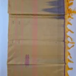 Golden-yellow pallu with fine pink stripes for a radiant contrast
