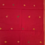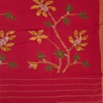 Vaidehi – The Scarlet Blossom radiates the charm of festive elegance. Woven on a rich red base, this saree features intricate multicolor embroidery, complemented by delicate threadwork throughout. The pallu is adorned with graceful floral motifs that add a touch of regal sophistication. With its soft texture and elegant drape, this saree is a perfect blend of tradition and contemporary style — designed to make every celebration unforgettable