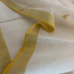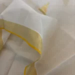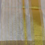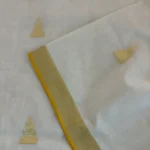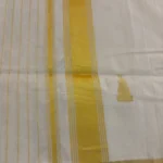 Where tradition meets quiet elegance — this handwoven kasavu beauty features shimmering Temple design motifs scattered across the body, framed by a dainty golden border. Light as a whisper and effortlessly graceful, it’s a piece that shines in every moment.